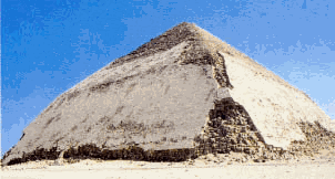 La primera pirámide de Egipto que aun se puede contemplar se debe al faraón Dyoser, de la dinastía III. Esta tumba regia, que antes era una mastaba, se transformo en una pirámide escalonada. Esnofru, primer rey de la dinastía IV, aplico un cubierta exterior a la pirámide escalonada iniciada por su padre, Huni. Aparecen, pues, los primeros intentos de construcción de pirámides lisas, que albergaran, en su interior, otra, escalonada. Para colmar estos "escalones" se empleaban bloques de revestimiento. Esnofru se hizo construir además de Dahshur la Pirámide Romboidal, que cambia de dirección a media altura, y la Roja, la primera pirámide lisa regular. Pero la mas alta y perfecta fue la de Queope, en Guiza. Sus sucesores, Quefren y Micerino, siguieron este modelo. Las pirámides de las dinastías V y VI imitaron a las de Guiza, pero son mas toscas y mas pequeñas. Las pirámides del Imperio Medio presenta estructuras relativamente modestas, y se construyen con materiales perecederos.